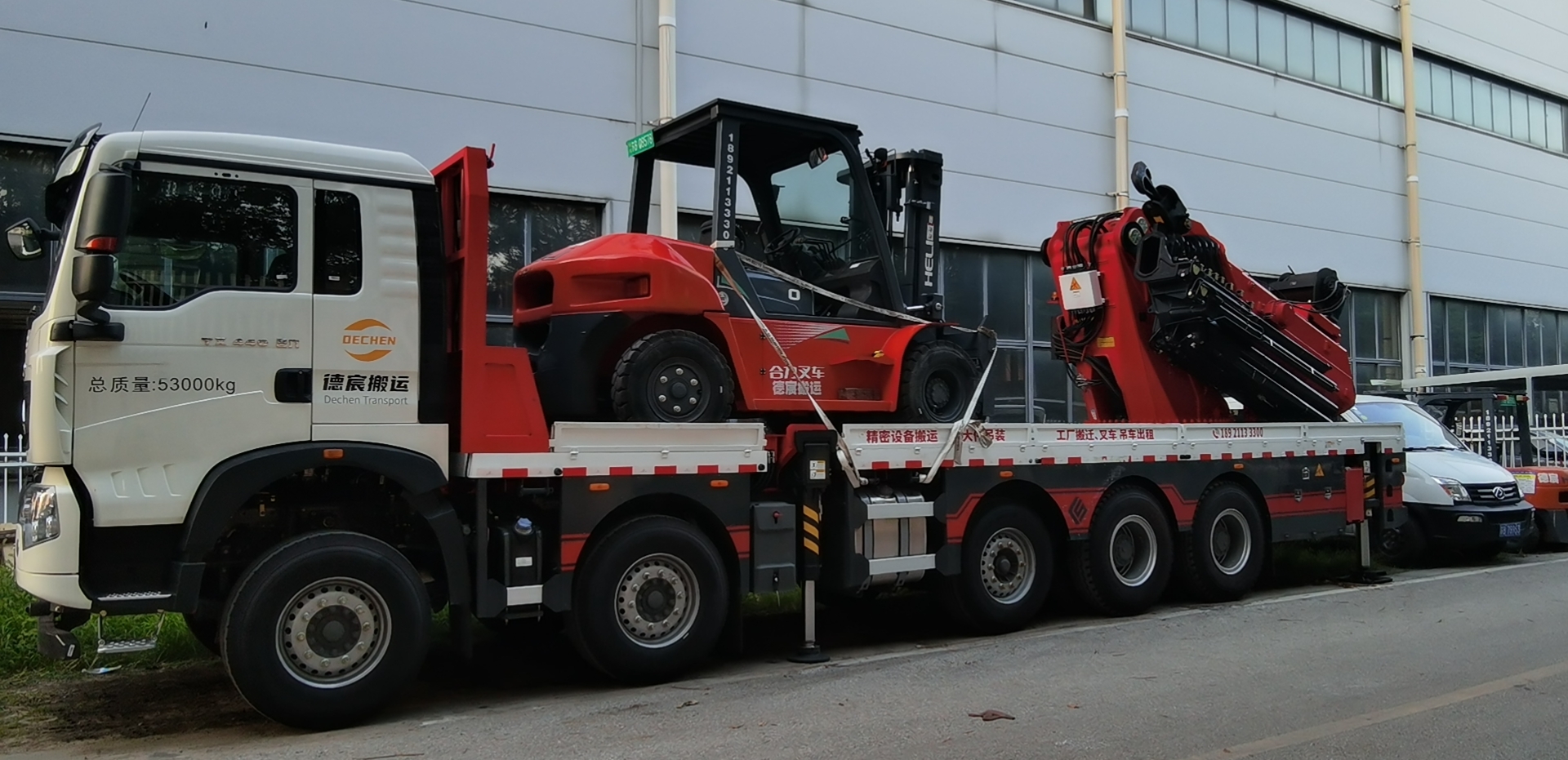 公司擁有隨車吊數(shù)臺(tái),叉車數(shù)臺(tái),適合在低矮廠房車間內(nèi)靈活搬運(yùn),安裝各類型機(jī)械設(shè)備